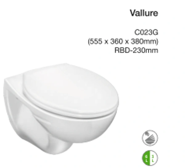 PARRYWARE-WALL HUNG WC-VALLURE-C023G RBD-230mm-555 x 360 x 380mm